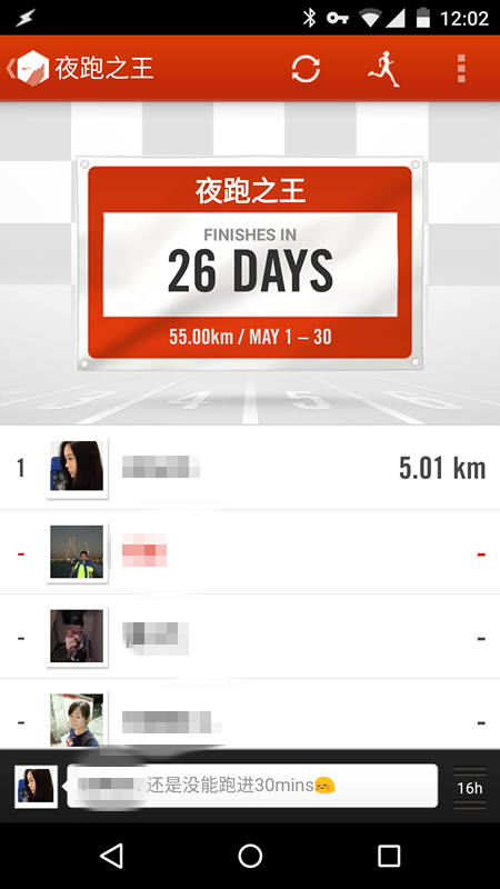 2.加入挑战计划。每个月我们会通过nike+跑步应用会发起一个“挑战计划”(五月的跑步挑战——“夜跑之王”),每个参与挑战计划的成员们自行完成当月挑战。
