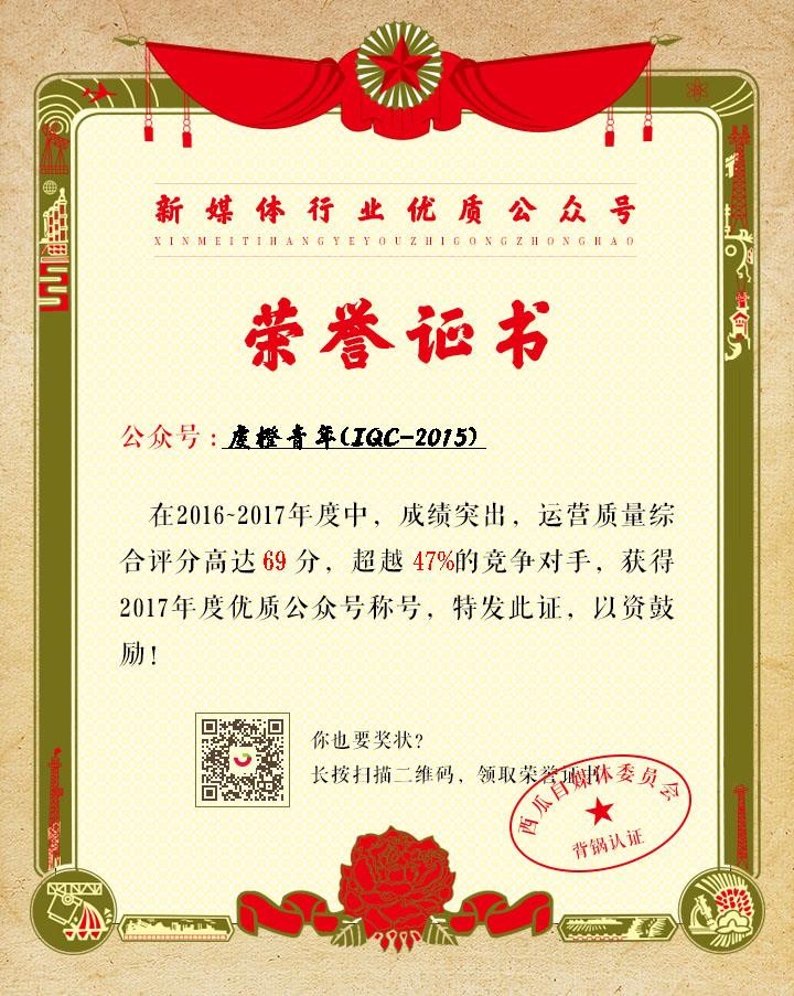 “3.15消费者权益保护日”来临,很多行业都面临一年一度的质量大考。西瓜君(微信公众账号运营评测机构)在315到来前夕,提前为近千万个公众号做了一次全面体检。通过发文稳定度、阅读量与粉丝活跃度、原创度与资料完整性以及公众号违规情况四个方面的综合评估,为其中得分高于60分的运营质量较高的698325个公众号颁发了优质公众号的认证,颁发了新媒体行业优质公众号荣誉证书!
