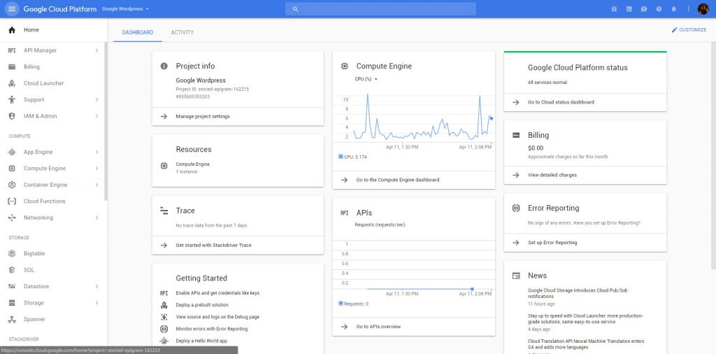 在比较了多家虚拟主机服务商之后,我们选择了Alphabet公司的Google Cloud Platform(以下简称GCP)云服务平台(其实主要就是Alphabet送了一个300$/12个月的试用优惠)。