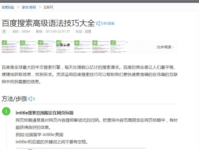 谷歌和百度都有一套高级搜索语法,比如搜索标题,我们可以输入“intitle:虔橙青年”,我们迅速地找到标题中含有“虔橙青年”网页。“site,link,inurl,allinurl,intitle,allintitle……”,高级搜索语法还有很多,认真学习一下,能起到事半功倍的作用。比如“filetype”这个标签,输入“虔橙青年 filetype:docx” ,就能迅速筛选出标题含有“虔橙青年”关键字的word文档。