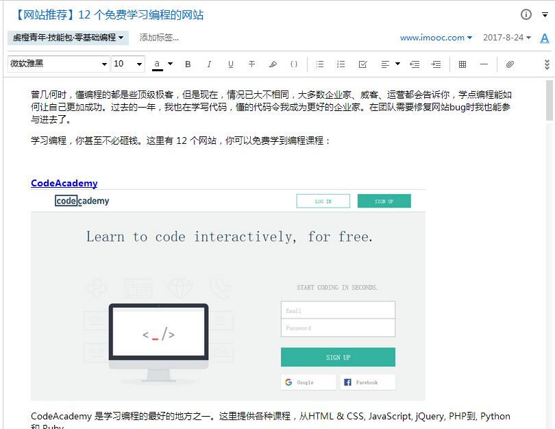 虔橙青年的发展也离不开后台的技术团队(虽然只有一个人)的支持,从我们的官方网站到微信公众账号,从我们团队内部的各种网络服务到印象笔记平台的共享学习社区,都有我们技术团队辛劳和汗水。本期利器周刊,推送我们技术团队收集到的“零基础编程·技能包”,凡是对编程有兴趣、感兴趣的同学,在【评论区】留下你的印象笔记注册电子邮箱,即可获得该“技能包”。