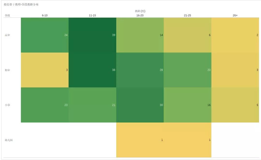 从学段及教龄的分布图上,我们可以看出,此次推选的骨干教师候选人都实质名归,平均教龄都在10年以上。而在初中阶段,骨干教师的竞争比较激烈,10年以上教龄是基本的门槛,未满10年教龄很难出现在评选的名单。