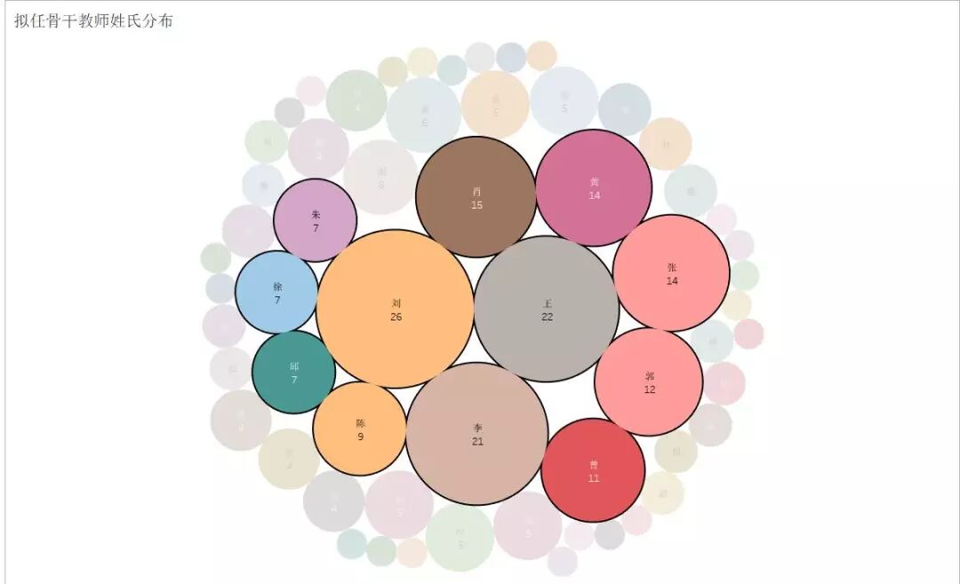 在274人的骨干教师候选名单之中,哪“家”的骨干教师人数最多呢?我们做了一个姓氏的统计,结果“刘、王、李、肖、黄、张、郭、曾、陈、邱、徐、朱”分列前十位,与2017年中国人口姓氏前十位“李、王、张、刘、陈、杨、赵、黄、周、吴”对比,几个大姓的统统在列。在此次的名单中,“肖老师”们更加吃香哦。