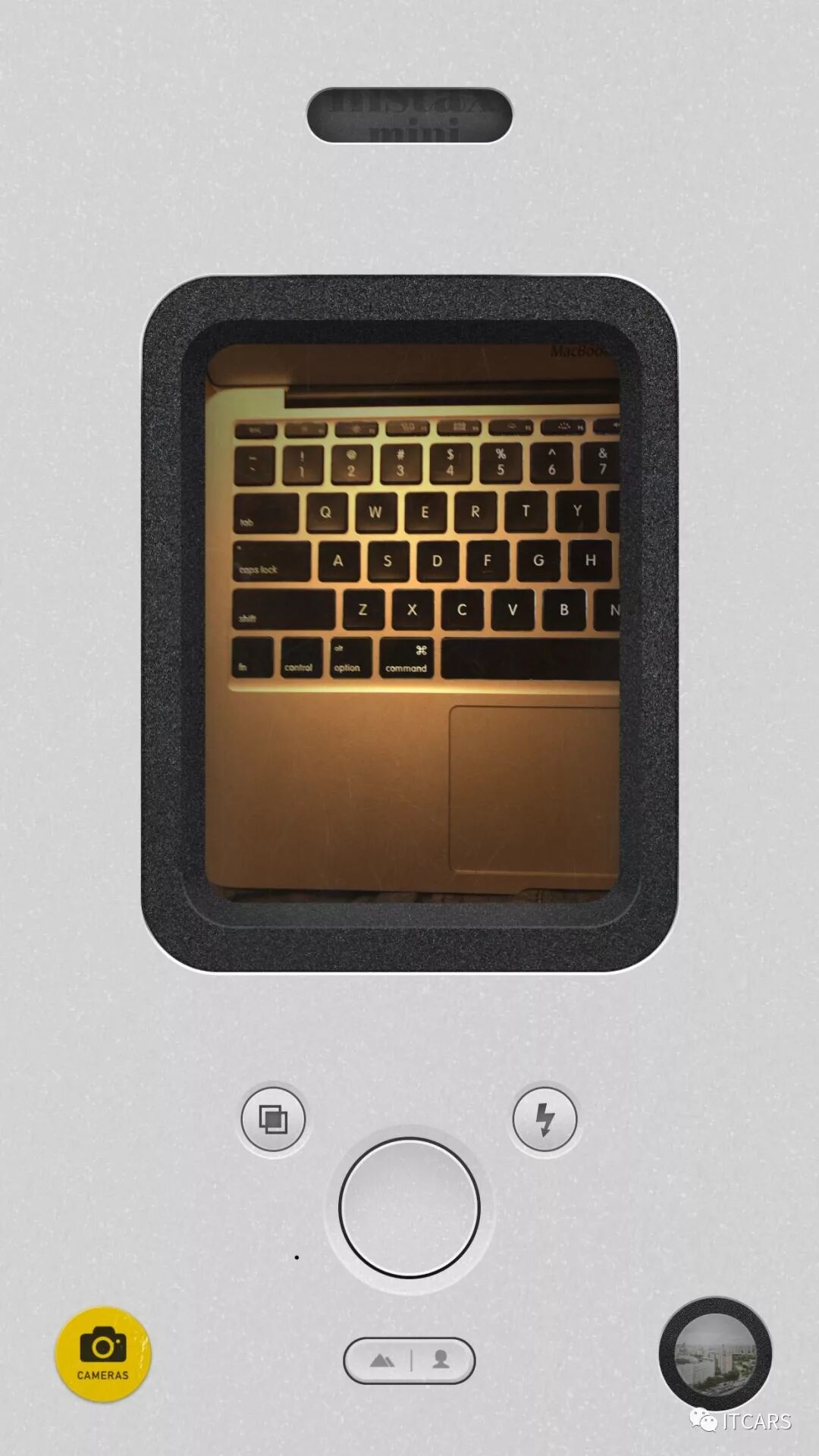 OK,现在按下快门试试,不仅有清脆的快门声,还有手机的震动,随后伴随着机械声,就像真正的拍立得那样——右下角滑动出了一张相片。